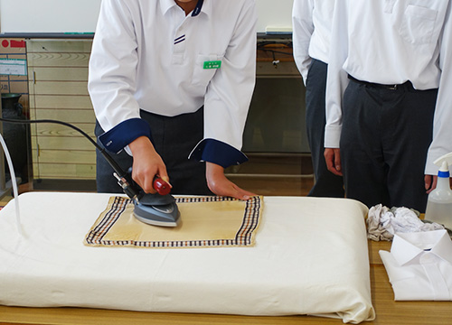![]() 湖北中学校・クリーニング業の実演(片岡講師) |