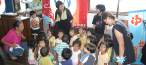 東近江市の東湯(あずまゆ、村田義治さん経営)では、平成19年9月5日(水)に、「おふろやさんに行こう〜みんなであらっいっこ〜」と題して、市内の「めぐみ保育園」の園児を招き、体験入浴を実施しました。 |