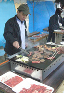 近江肉を味わって元気を出してもらおうと、滋賀県食肉生活衛生同業組合(中江義孝理事長)では、振興事業(当指導センター共催)の一環として、平成21年3月7日に、湖南市の児童福祉施設「近江学園(前田建治園長)」に近江牛を届けました。約90人の子どもたちは、早速、グランドで焼肉パーテイーを開き、お腹いっぱいお肉を楽しみました。なお、近江学園のほか県内の児童福祉施設7カ所にも近江牛を贈りました。 |