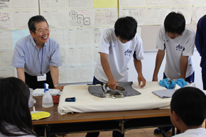 平成23年6月23日、滋賀県クリーニング生活衛生同業組合(西村松彦理事長)の協力により、東近江市立「愛東中学校」で、2年生47人を対象に「出前インターンシップ」を実施しました。第1部は、当センター谷本専務理事から「仕事と生衛業」について説明した後、組合の片岡副理事長からクリーニングの専門知識等について講義がありました。第2部は、組合の亀田専務理事や寺本青年部長によるカッターシャツを使ってのアイロン掛けと正式なたたみ方の実演があり、この後、生徒が自分のハンカチやカッターシャツを使ってアイロン掛けとたたみ方に挑戦しました。 <生徒の感想> ○やってみると結構難しかったのですごいと思った ○クリーニング業は国家資格がないとできないことをはじめて知った ○服などを洗うのに水を使わないことをはじめて知った ○もうすぐやってくる職場体験に今日の授業を生かしたい 等々 ◇当日の愛東中学校のホームページのトピックスです ◇当日、取材のあった業界紙「全ドラ新聞」の関社長のブログです |
