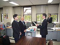 発起人代表へ認可書を読み上げる県生活衛生課 林課長(H26年12月)