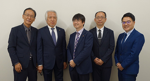 令和7年10月16日に、日本政策金融公庫の長田常務取締役が公庫大津支店に来社された際に、当県指導センターにも来局いただき、最近の経済動向をはじめ、生活衛生貸付制度全般や滋賀県内の生衛業の現況等についてざっくばらんに情報交換をいたしました。(写真は左から、谷本 当県センター専務理事、片岡 当県センター理事長、長田 公庫本店常務取締役、川瀬 公庫大津支店長、堀川 公庫本店生衛情報支援グループ長)