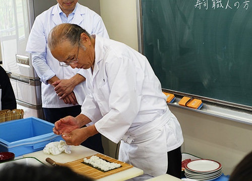 ![]() 篠原小学校・すし業の実演(廣瀬講師) |