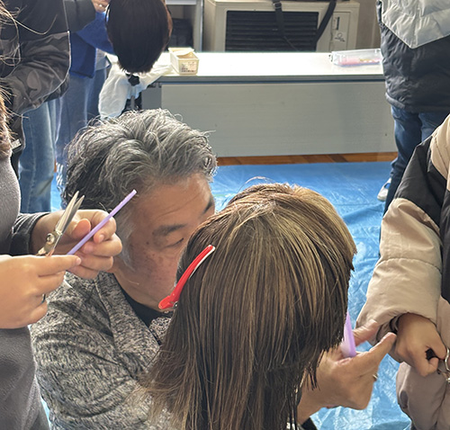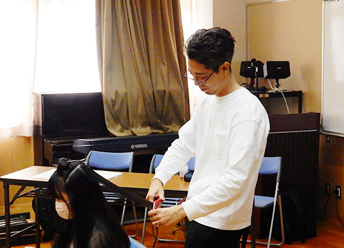 ![]() 旭森小学校・美容業の実演(中垣講師) |