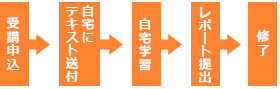 自宅などでテキストを使って受講し、一定期間内にレポートを提出する研修・講習です。